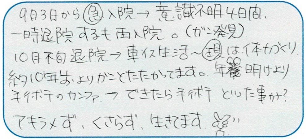 クリスマスプレゼント返信ハガキより -近況その2・後援会へー