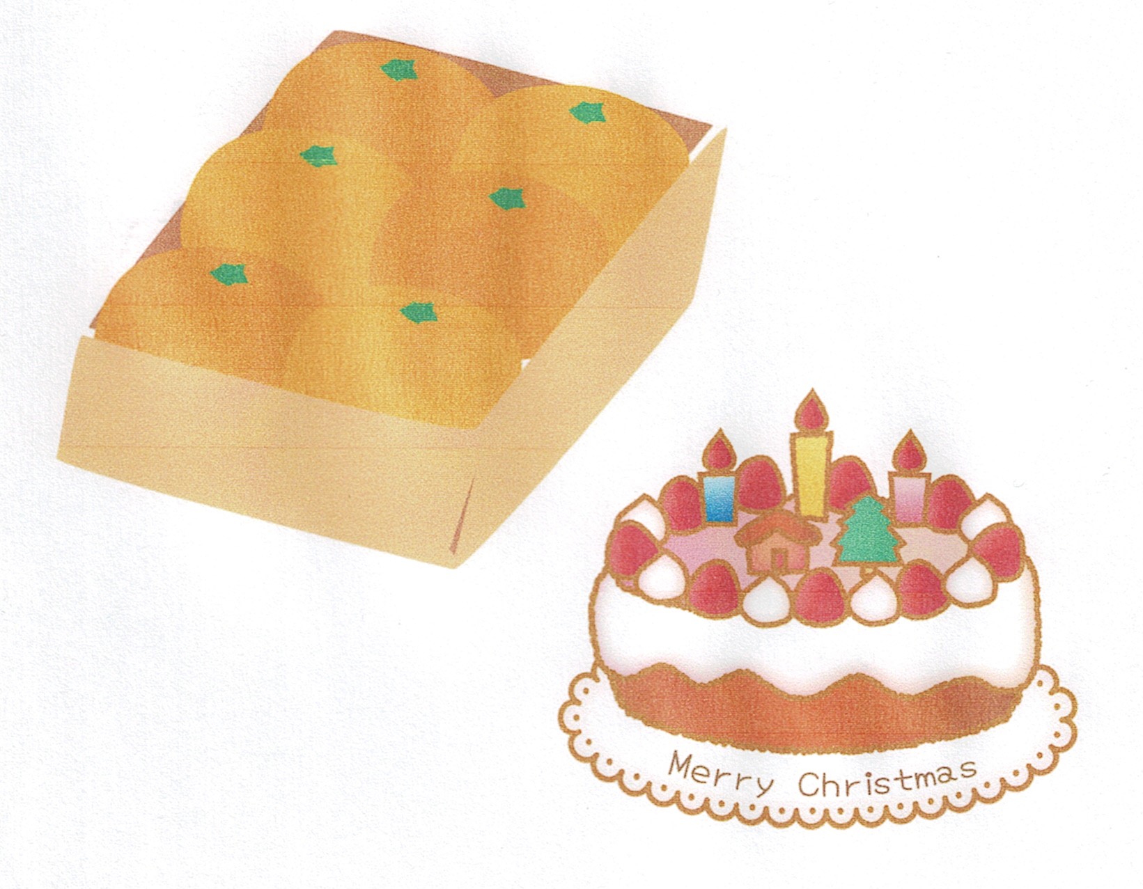 クリスマスケーキとミカン一箱を